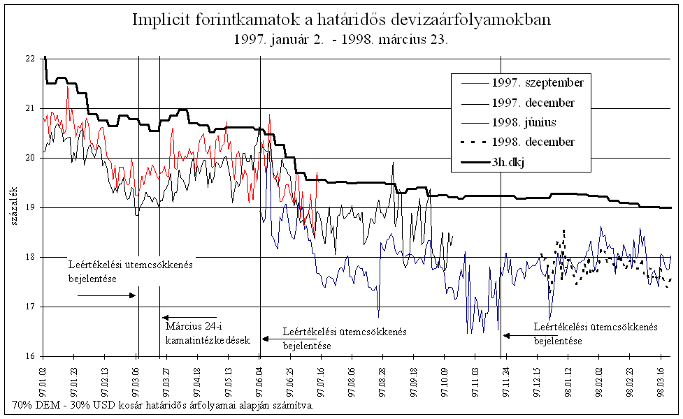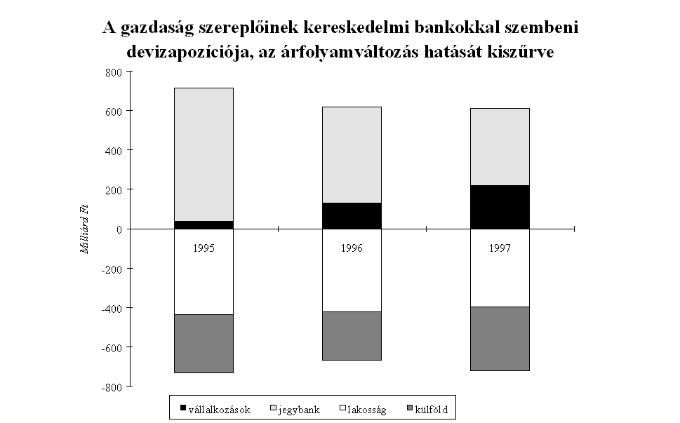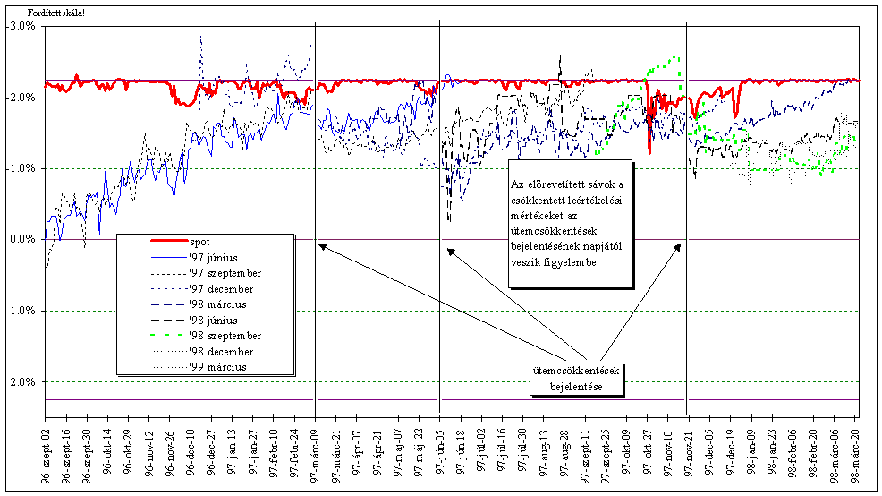 A határidős devizapiaci folyamatokat 1995 őszétől 1996 tavaszáig a forint határidős erősödésében bízva fedezetlen határidős kosáreladások jellemezték. 1996 közepétől ez