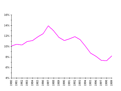 Mindezek következtében a készpénz GDP-hez viszonyított aránya az elõzõ évi 7,2%-ról 1999. év végére 8,2%-ra emelkedett. (Ábra XIII-3) Az Európai Unió országainak többségében ez az arány - elsõsorban a magasabb GDP miatt - kisebb, 3 és 7 % között mozog.