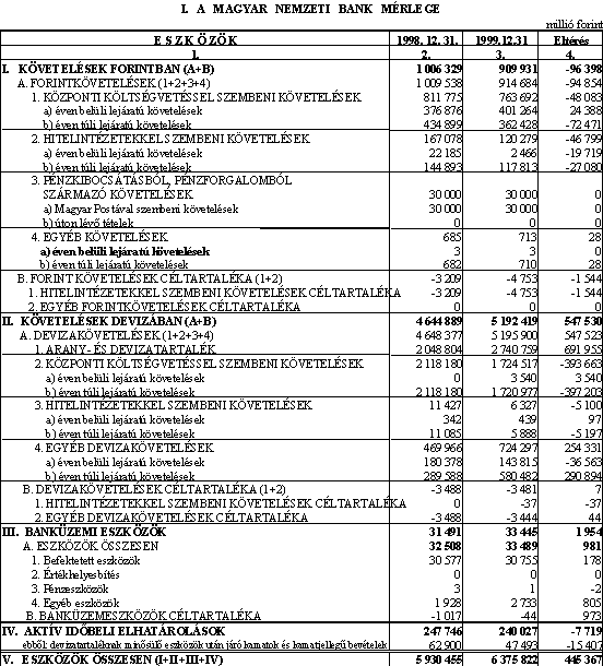 A MAGYAR NEMZETI BANK MÉRLEGE ÉS