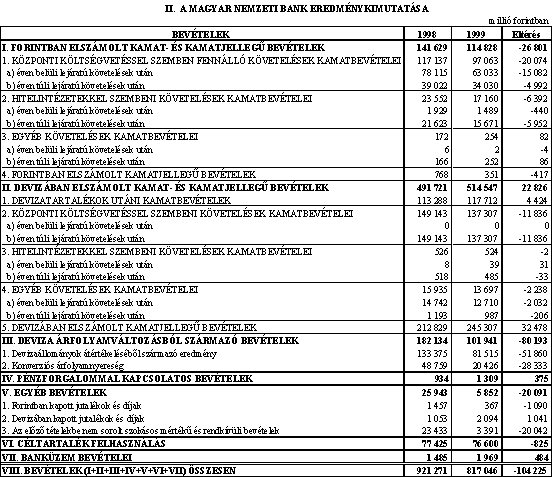 A törvénymódosítás részletes ismertetését az évi rendes Közgyûlésnek az MNB 1999. évi üzletévérõl készített Elõterjesztés és Jelentés I. kötetének III/A-3.fejezete tartalmazza.