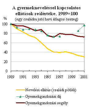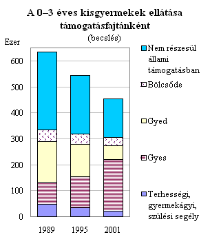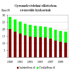 A kilencvenes években a gyermekvédelmi gondoskodásban részesülő kiskorúak száma folyamatosan csökkent, és 2001-ben 18 ezer volt. A gyermekotthoni hálózat átalakult, a nagy gyermekotthonok általában kis létszámú - legfeljebb 12 gyermek elhelyezésére szolgáló - otthonokká szerveződtek, továbbá szervezetileg 1998-tól a csecsemőotthonok is az említett intézménytípushoz tartoznak. Az érintett gyermekek gyermekotthonokba vagy nevelőszülőkhöz kerülnek. Az intézetekben elhelyezettek száma az időszak alatt felére csökkent, a nevelőszülőkhöz elhelyezetteké alig változott.