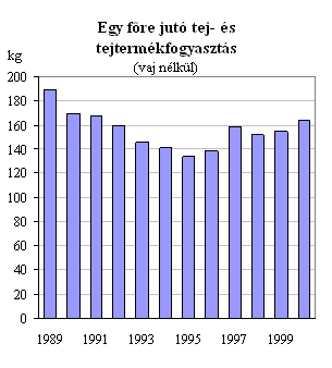 2.46. A háztartások egy főre jutó éves hús- és tejfogyasztása régiónként* *