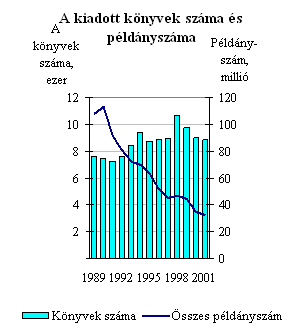 A kilencvenes években kiadott könyvek száma meghaladta az évi 8 ezret, és volt olyan év, amikor 12 ezernél is többféle könyv jelent meg. A példányszám ezzel párhuzamosan visszaesett. A kiadott művek átlagos példányszáma 1989-ben 14 300 volt, 1994-ben ennek fele, és 2001-ben nem érte el az egyharmadát.