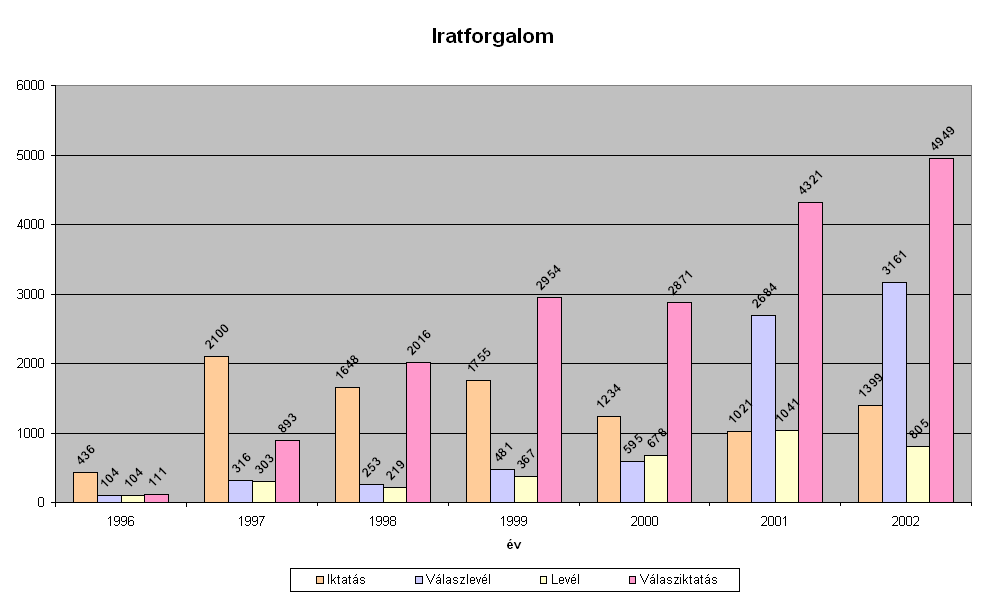 Az iratforgalom során 2002-ben 10 314 ügyirat keletkezett, 1247-tel több mint 2001-ben. A növekedés mértéke 13,8%. Ebből