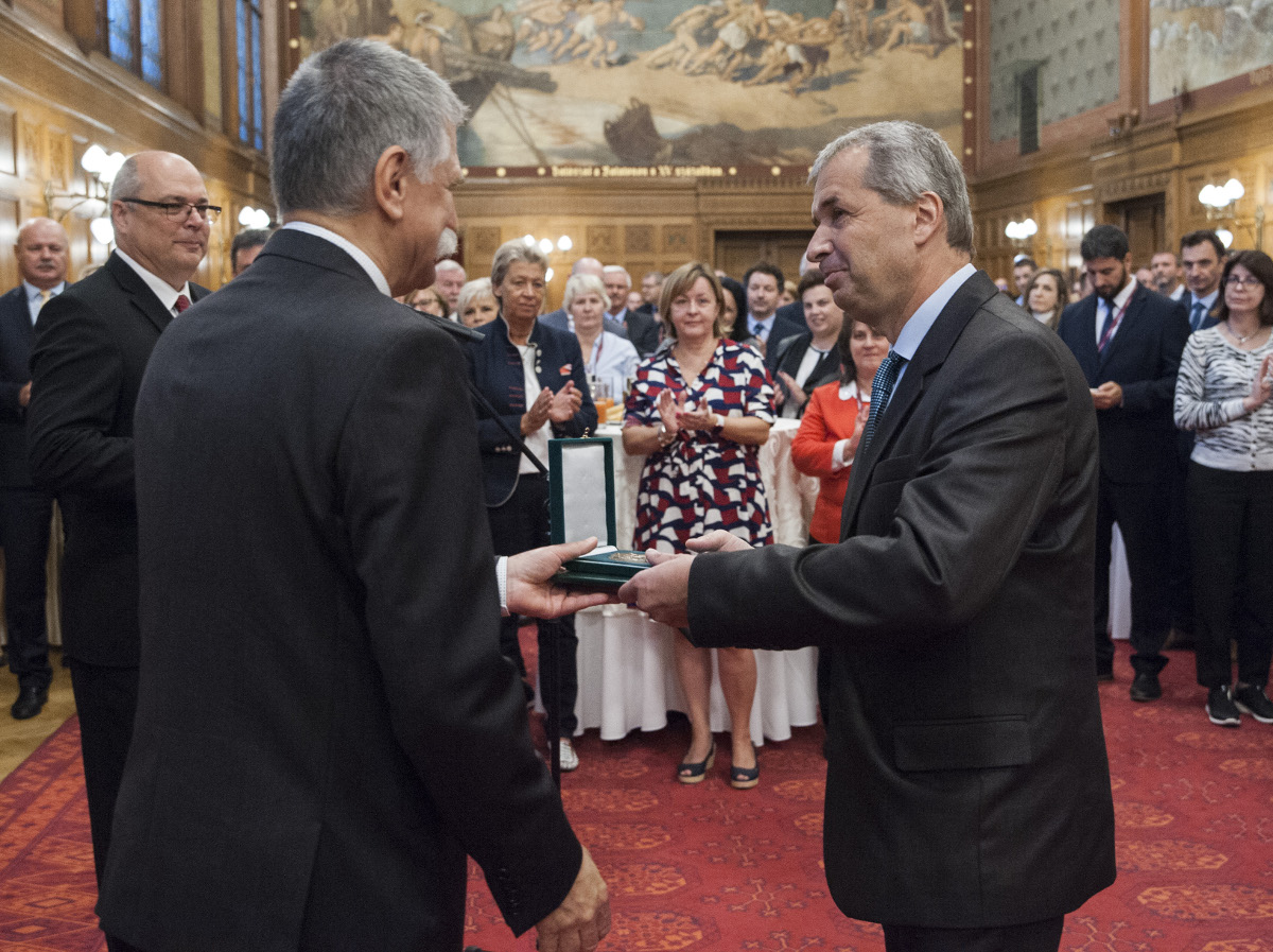 Rövid ünnepség keretében Dr. Kövér László, az Országgyűlés elnöke megköszönte az elmúlt időszakban végzett munkát, majd átadta a díjakat.