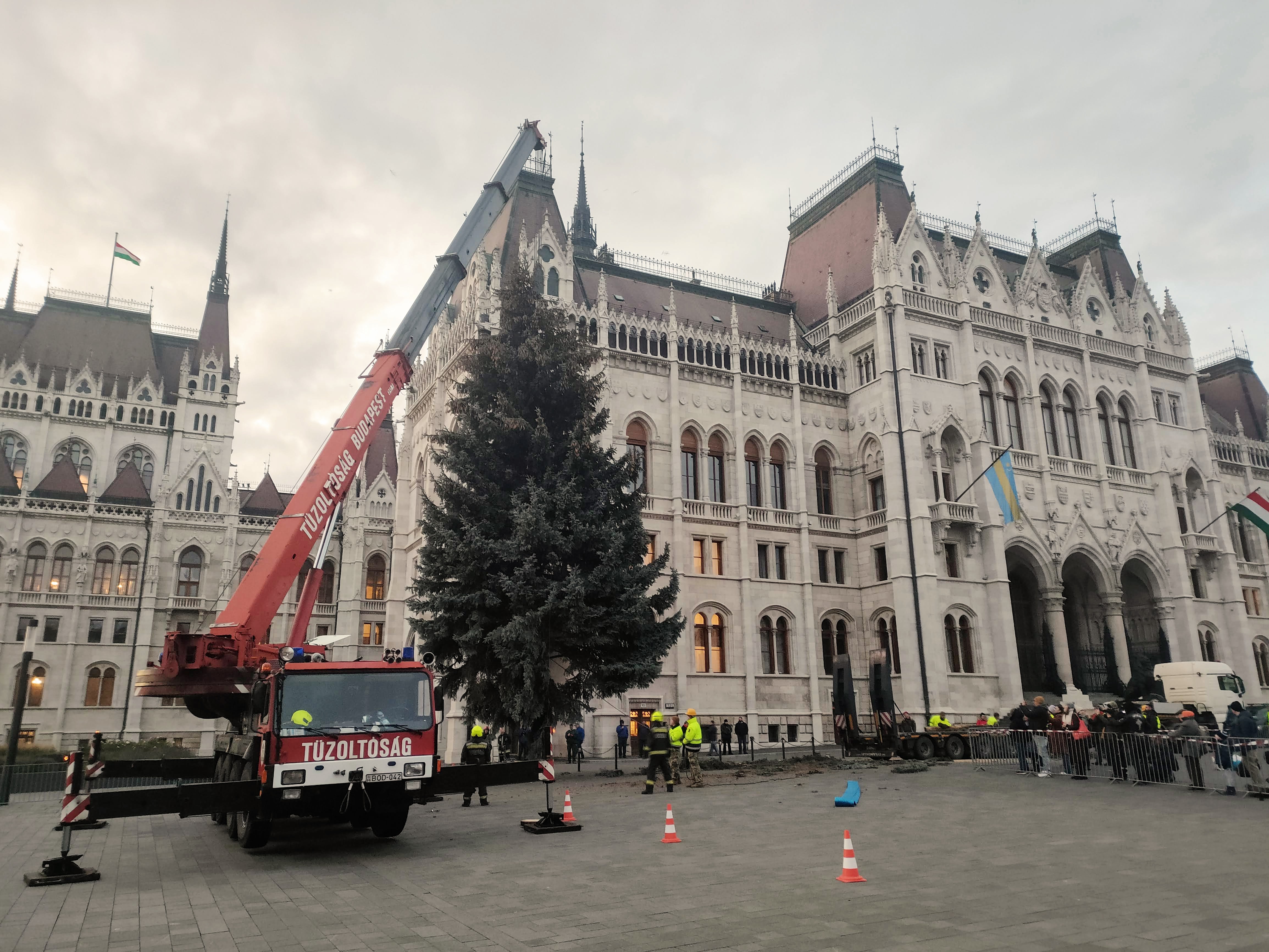 Megérkezett a Kossuth térre az Ország Karácsonyfája