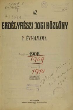 Folyóirat adatok - Erdélyrészi Jogi Közlöny