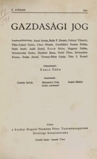- Kuncz Ödön: Beköszöntő. = Gazdasági Jog, 1940. I. évf. 1. sz. 1–4. p.