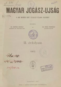 2. évf. 1. sz. (1903. jan. 1.)–2. évf. 10. sz. (1903. máj. 15.) között a lap címe: Magyar Kodifikáczió. Különösen a polgári törvénykönyv tervezetének kritikai feldolgozása.